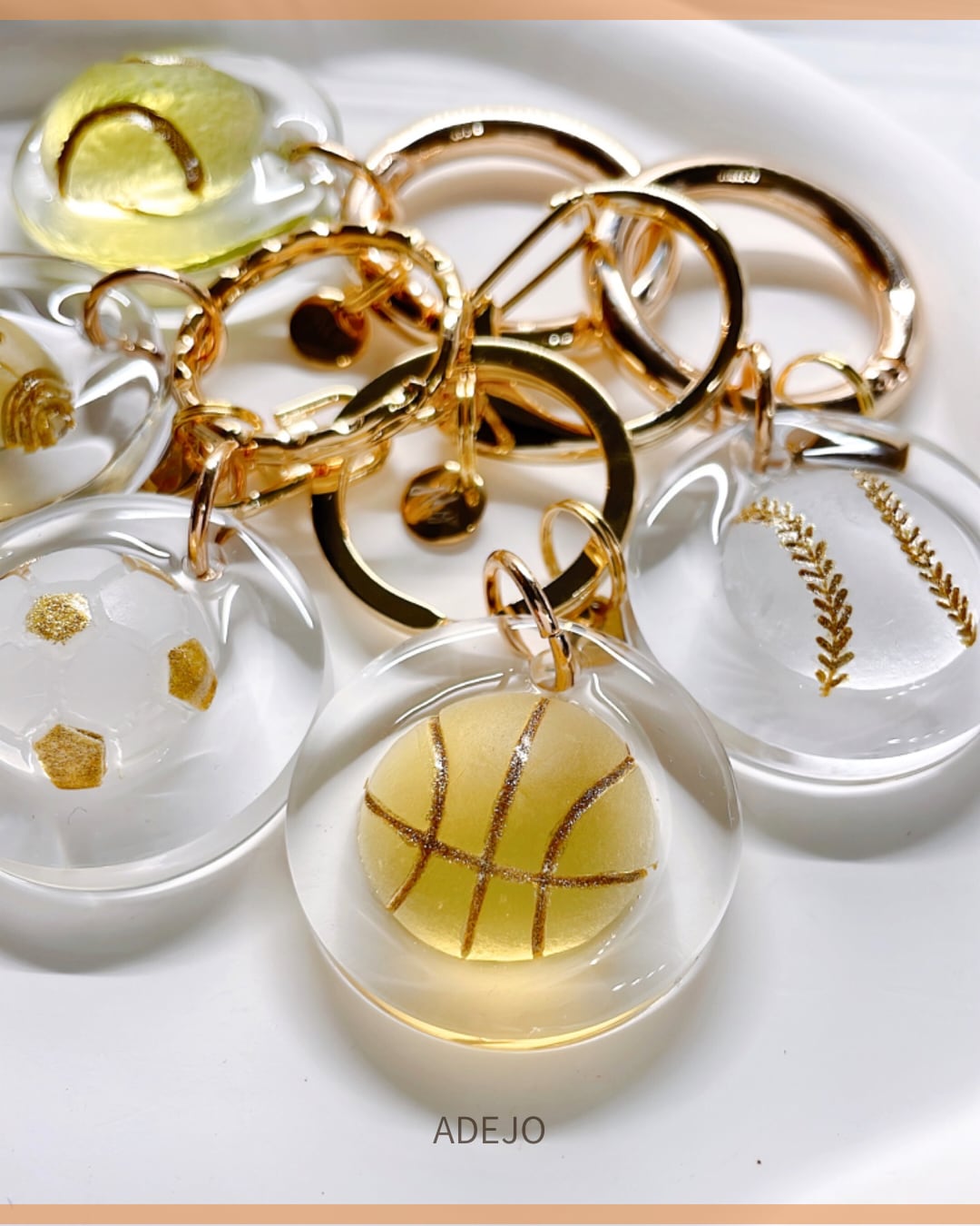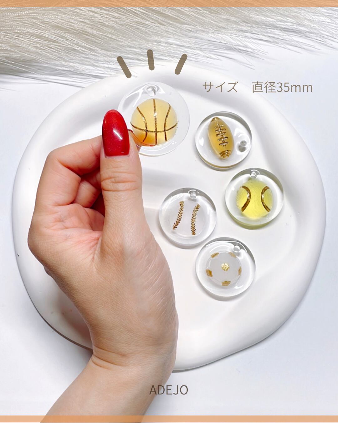 スポーツを愛するチームメイトや部活の仲間にぴったりなデザインのスポーツチャームが登場!丸い形状で透明感があり、さわやかな印象を与えます。