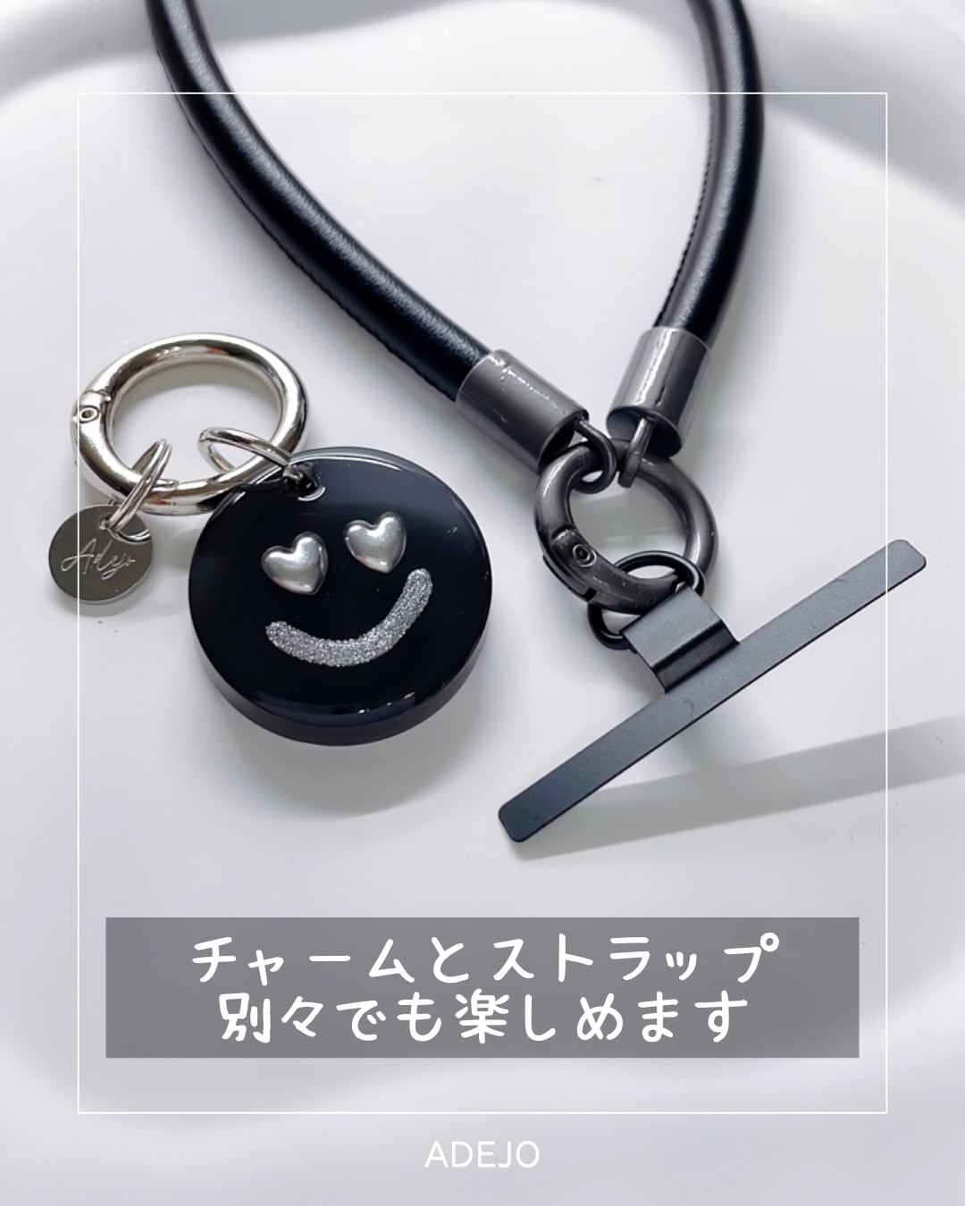 洗練された黒とシルバーのエレガントな組み合わせが際立つレザーのストラップが登場しました!このストラップは全長約28センチで、大人の雰囲気を演出しながら、キーホルダーや鍵に付けても最適な便利アイテムです。クールでかっこいいイメージを持ち、ブラックで統一されたチャームがアクセントとなり、スタイリッシュさを引き立てます。