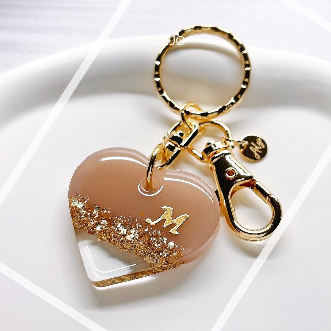 エレガントで華やかな、ハートチャームのキーホルダーが新登場!金箔のゴールドや銀箔のシルバーが、クリアとカラーの2層に施されたデザイン。どんなバッグや鍵、お財布にもぴったり。横40mm×縦35mmの存在感あるサイズです。ヌーディカラーの優しい色味は、オンナ心をくすぐるアイテム。大人っぽい印象を与えながらも、キラキラ輝くハートは女の子らしさを忘れないデザイン。あなたの鍵やお気に入りのバッグに、ひとさじの愛を添えて。心のこもった一品を、ぜひ手に取ってみてください。